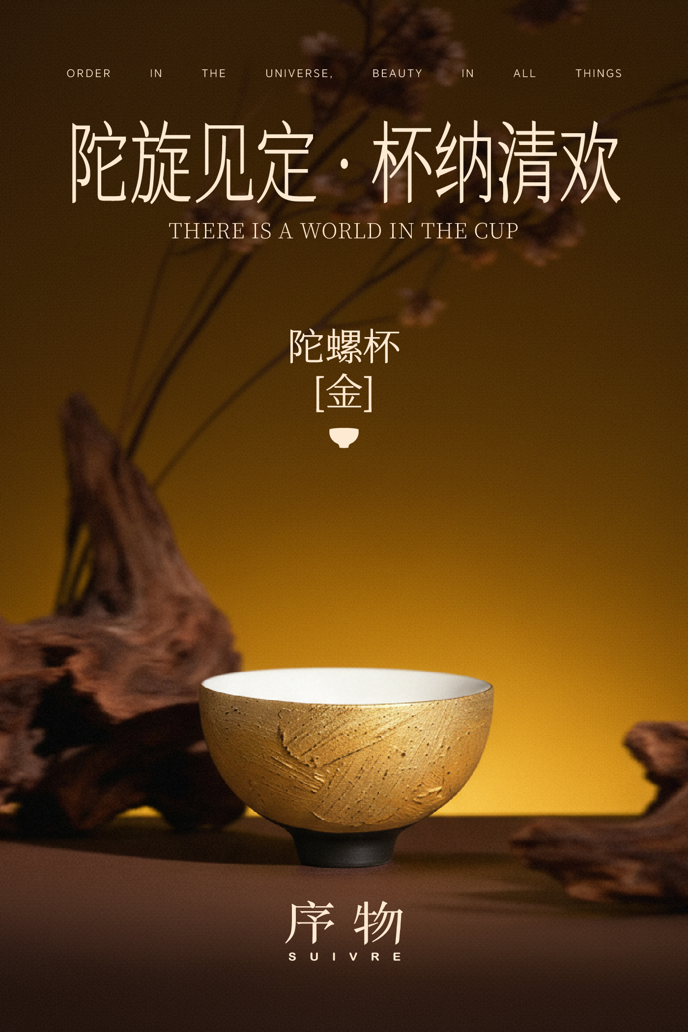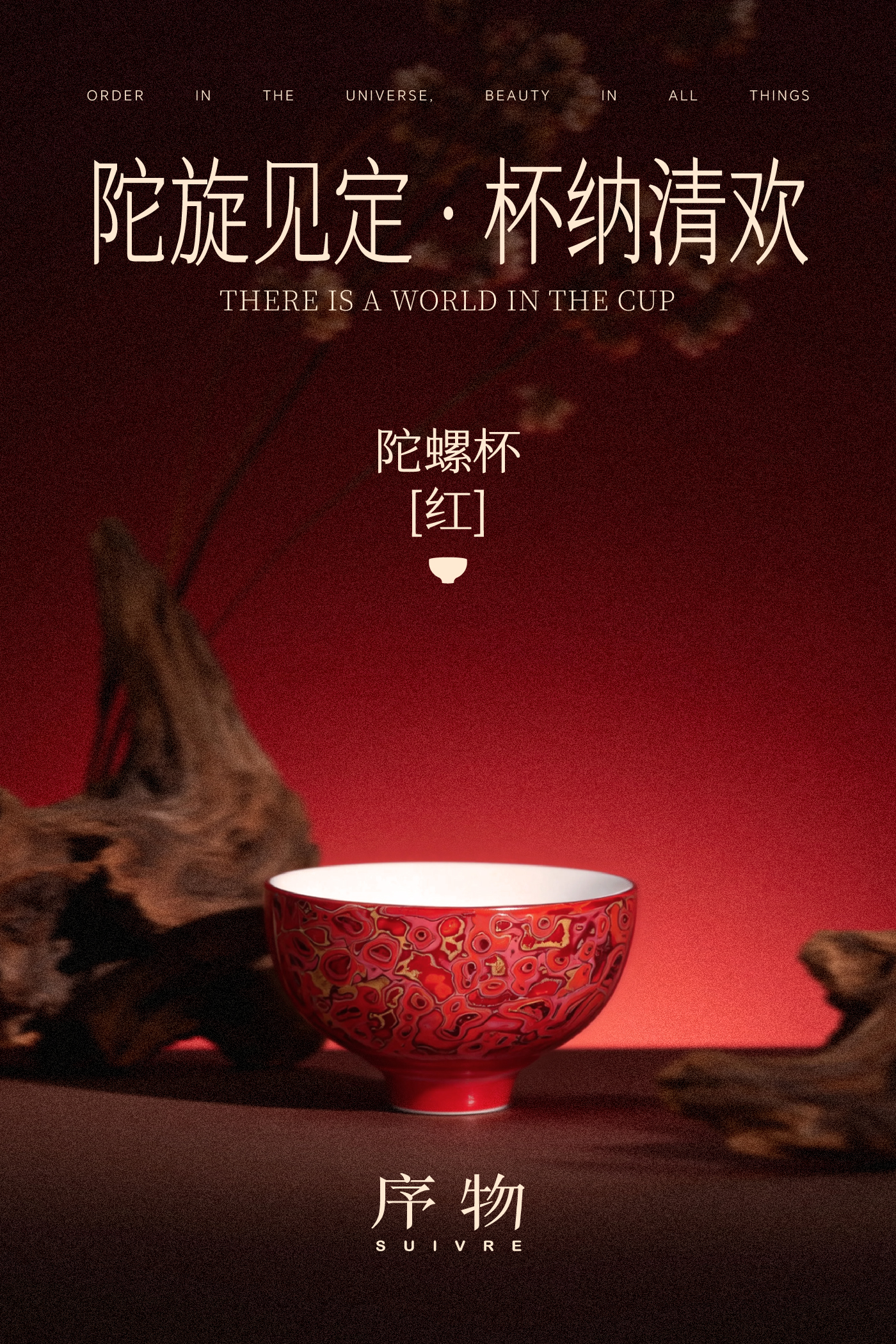 序物所制陀螺杯,其名“陀螺”,灵感取自台湾传统童玩。设计师捕捉陀螺旋转时那种忘我、稳定的动态意象,将其凝固于杯形之中。杯身环状髹饰的色层,髹饰技法多元,模仿陀螺飞旋时视觉暂留的幻影,静中有动,意趣盎然。